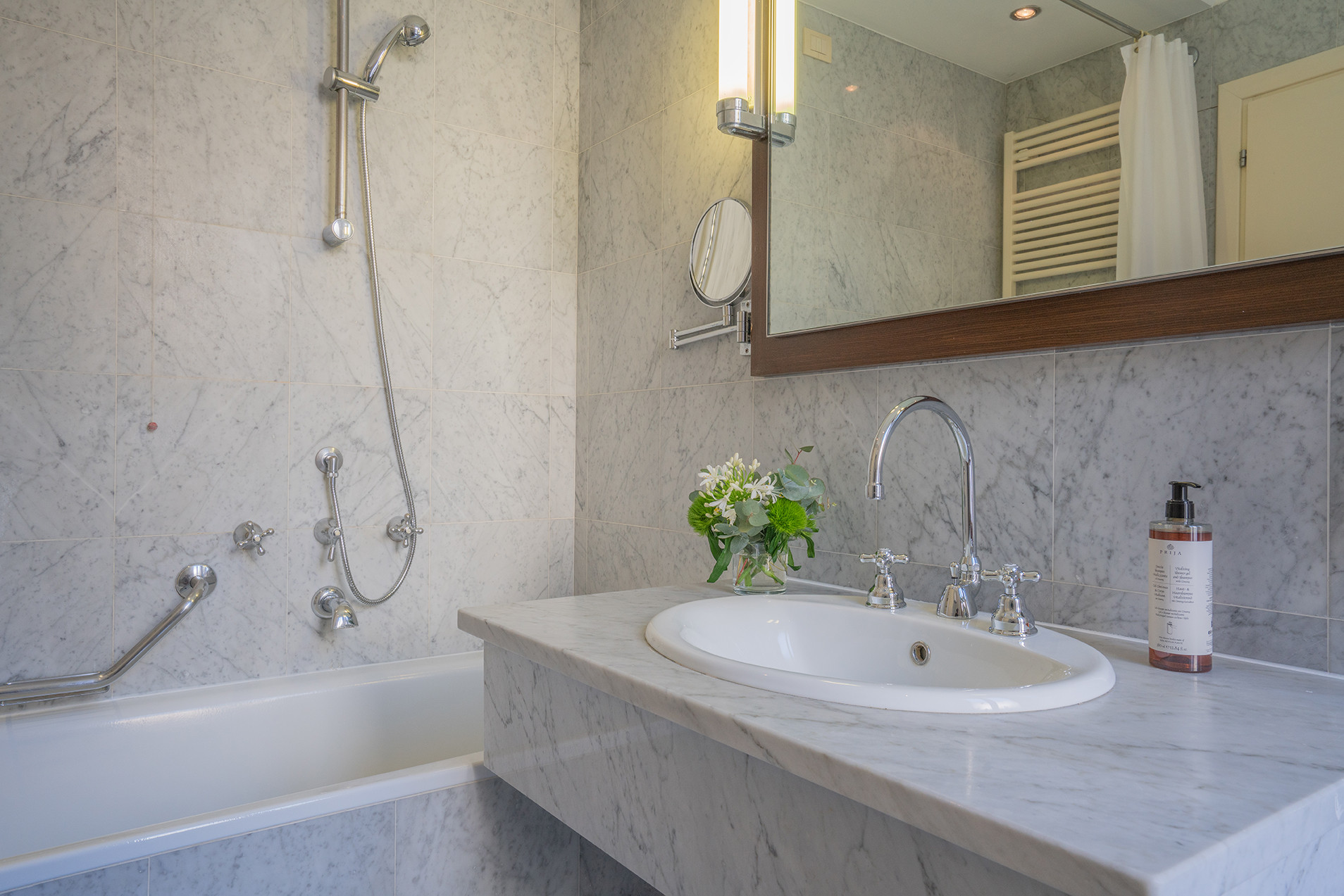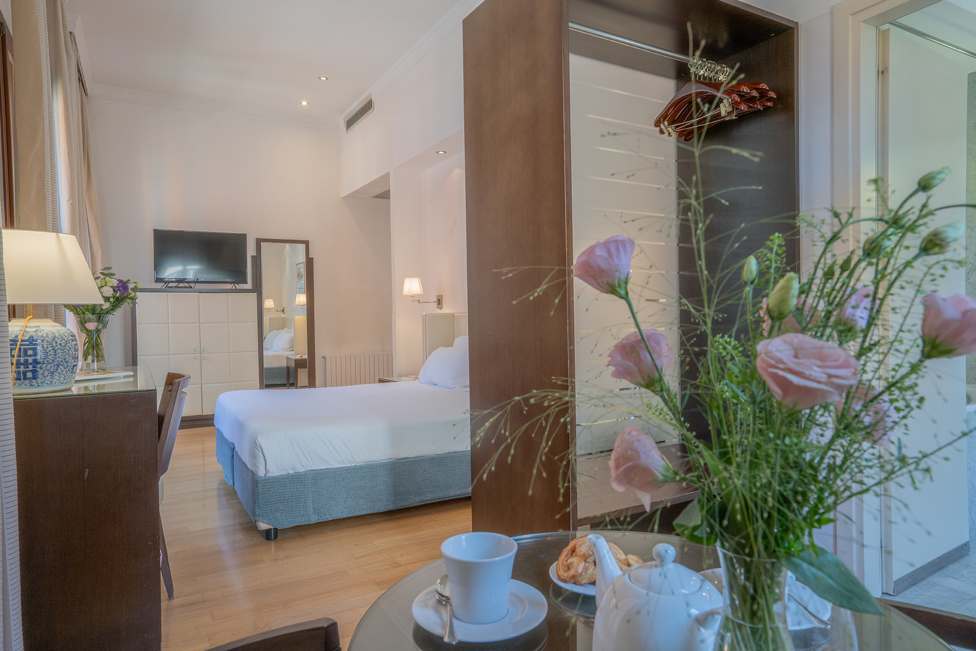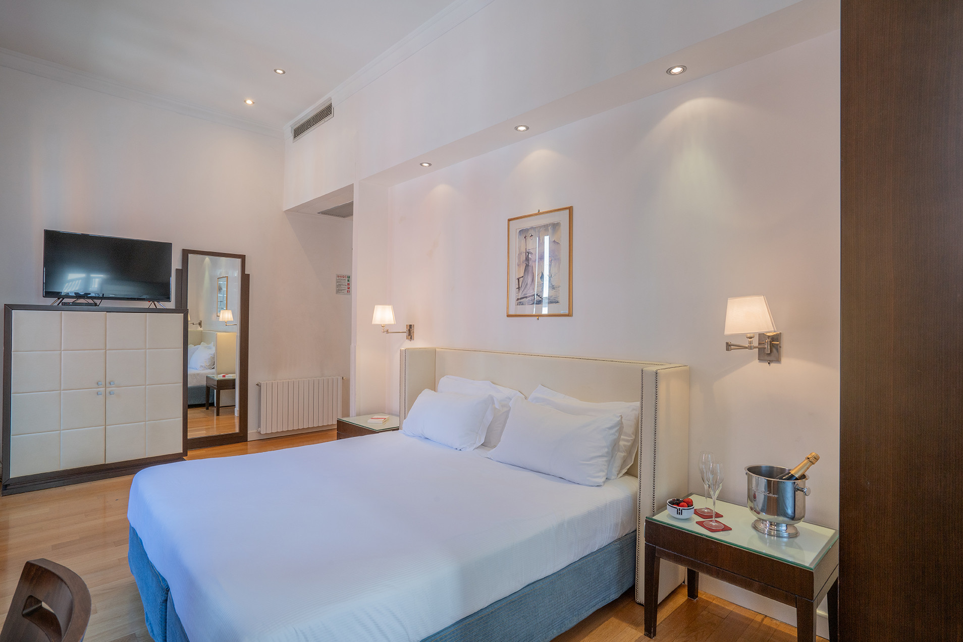 Alle Zimmer verfügen über ein eigenes Bad mit Badewanne, Wandföhn, Duschgel/Shampoo, Klimaanlage und Heizung mit einstellbarem Thermostat, TV mit Sky-Kanälen, Wasserkocher sowie Kühlschrank/Minibar mit Willkommensprodukten wie Snacks und Wasser.
