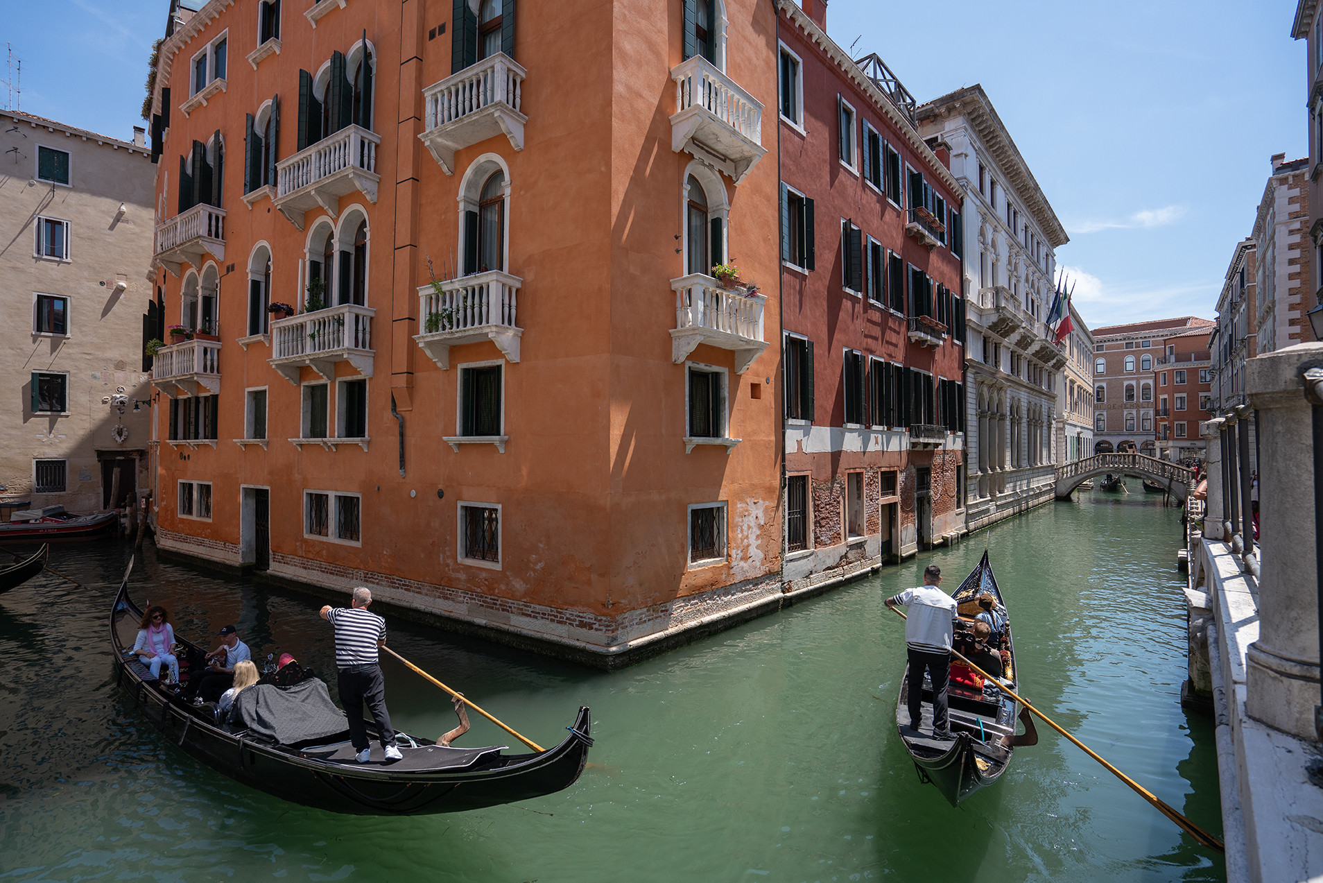 Double Canal View: größere Zimmer mit Panoramablick auf den Kanal, perfekt für Gäste, die die Magie der Stadt voll genießen und die vorbeigleitenden Gondeln von ihrem Fenster aus beobachten möchten.