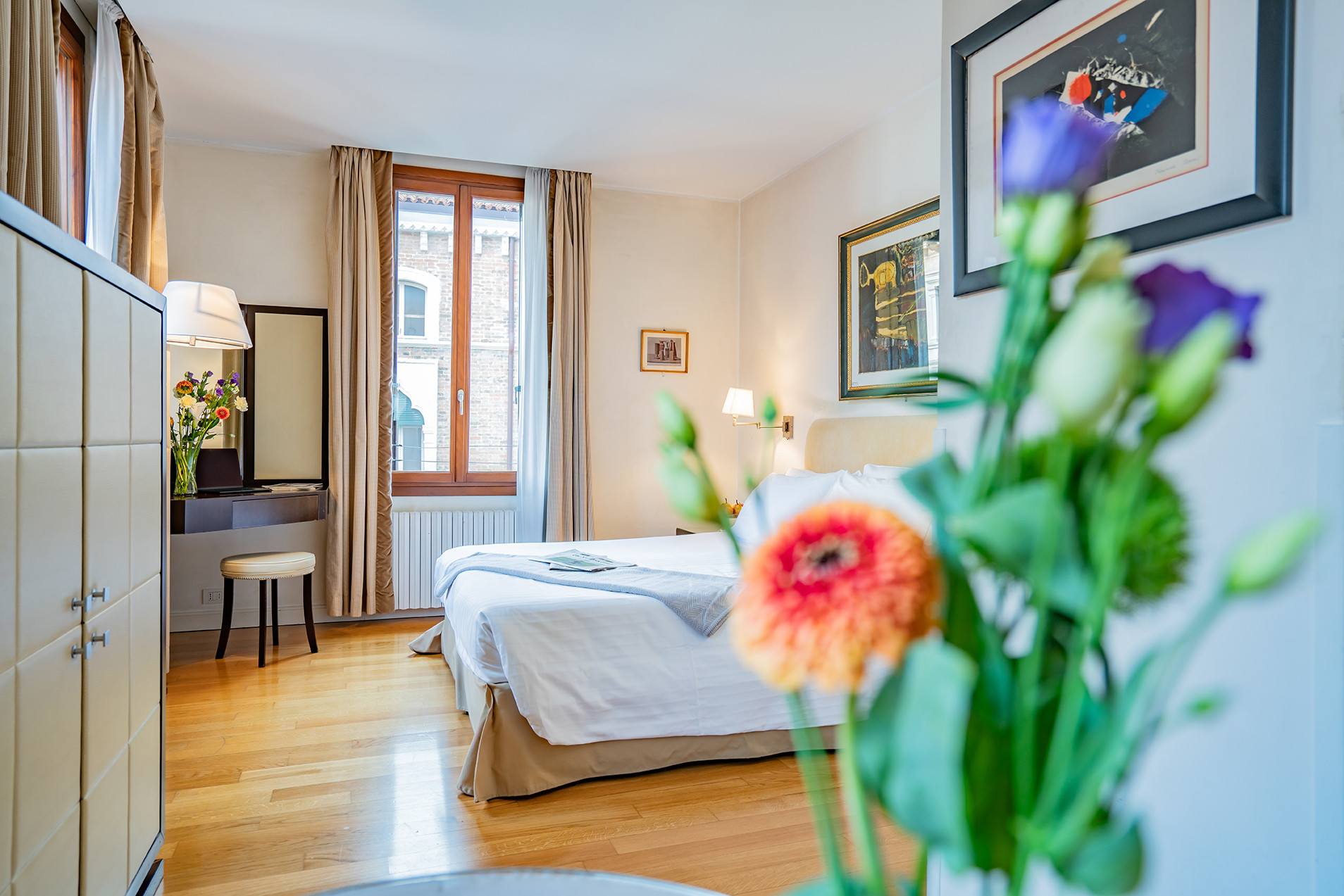 Double Romantic: camere accoglienti e luminose affacciate sul Bacino Orseolo, perfette per un soggiorno romantico a Venezia.